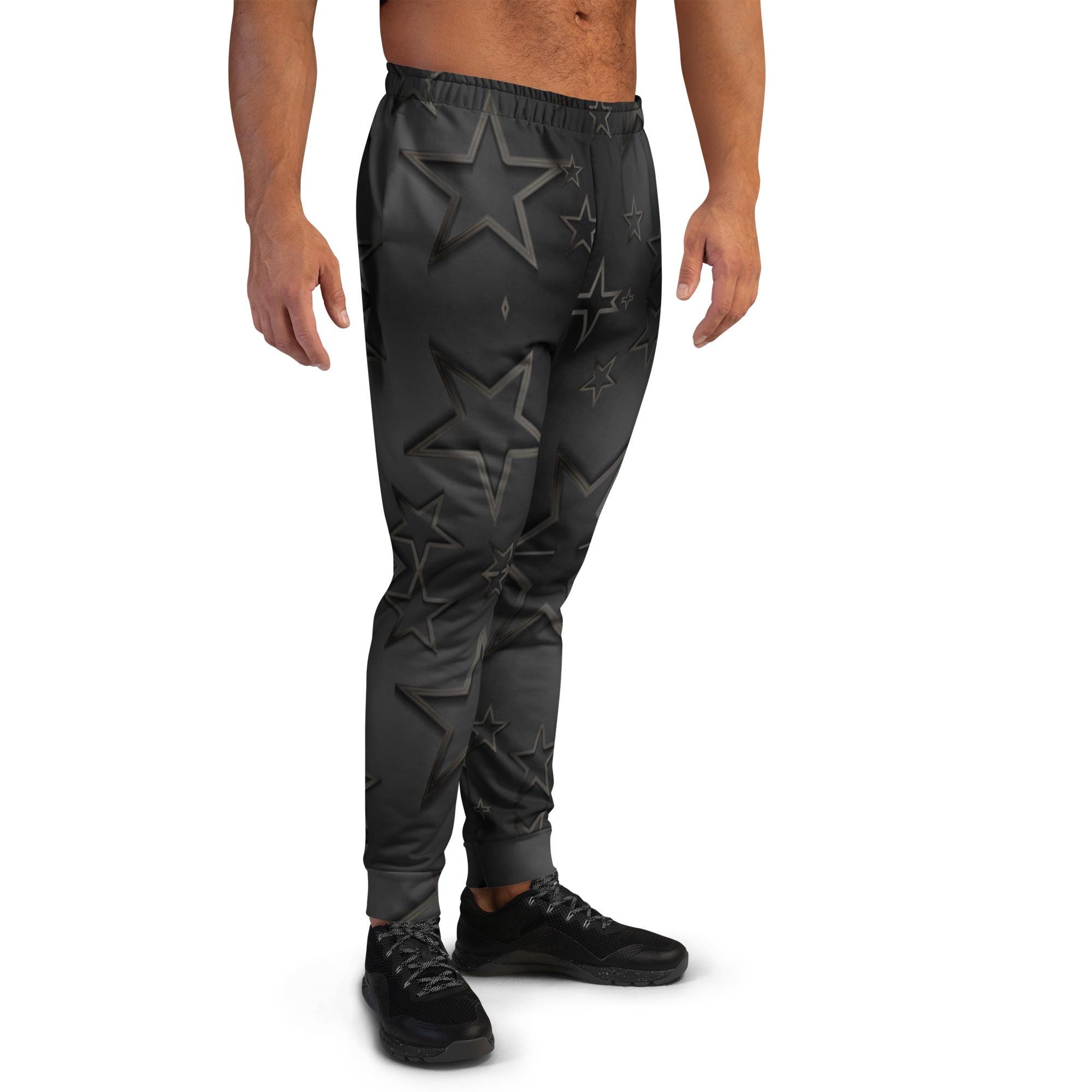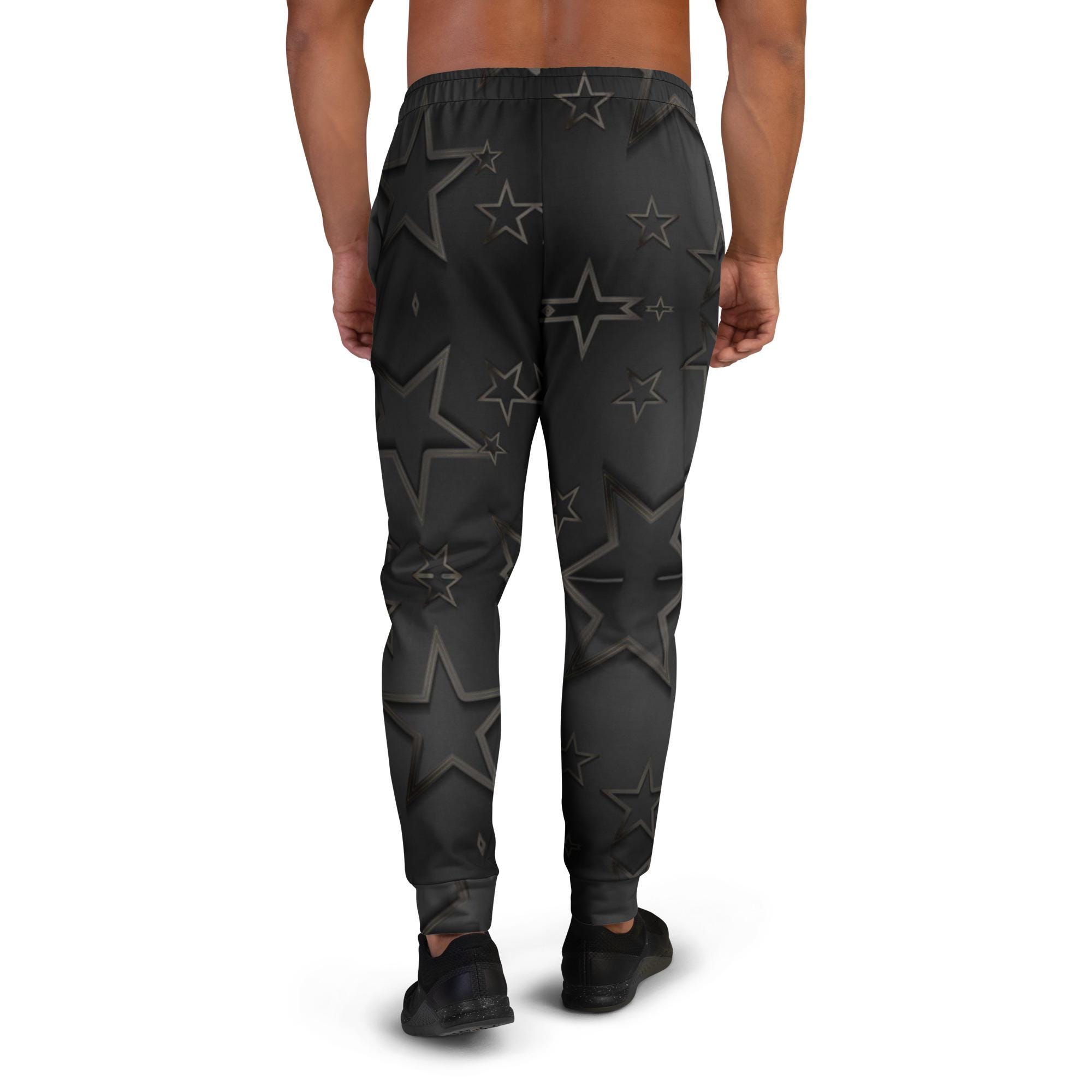 Men's Star Print Joggers: Recycled Polyester Fleece Lounge Pants